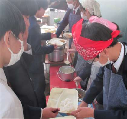 給食の配膳風景です。