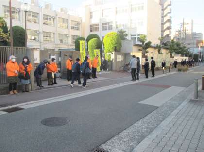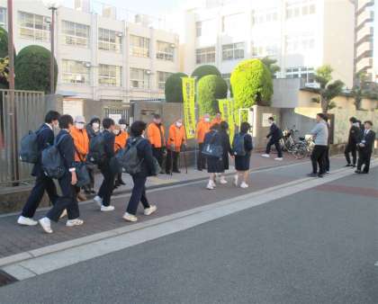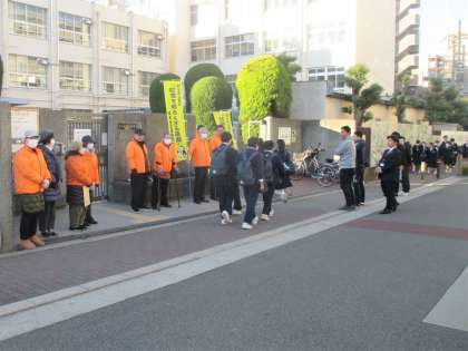 城東地区保護司会の協力で「あいさつ運動」に取り組みました。