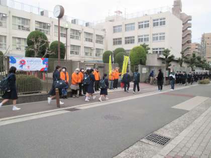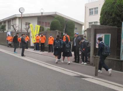 城東地区保護司会の協力で「あいさつ運動」に取り組みました。