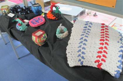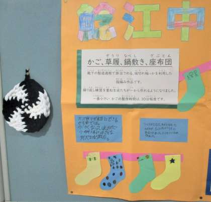 本校からも、かご、草履、鍋敷き、座布団、ペン立て、団扇を