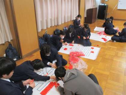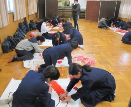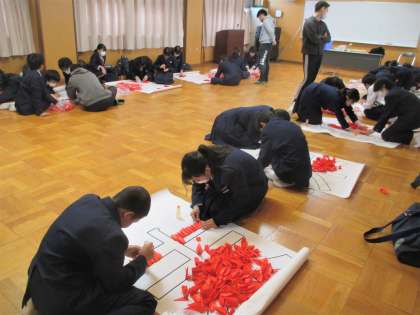 鶴の折り紙を使用した鶴文字の作成です。