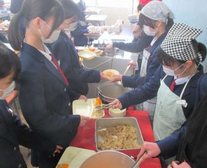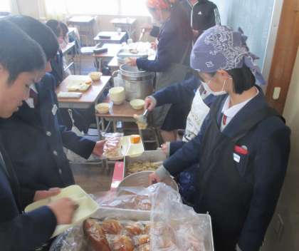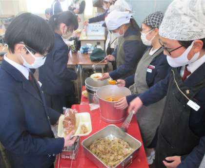 給食の配膳風景です。