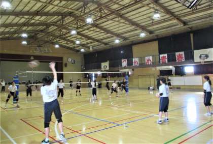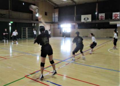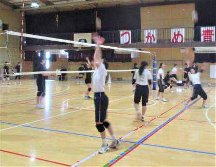 体育館 女子バレーボール部の練習風景です。
