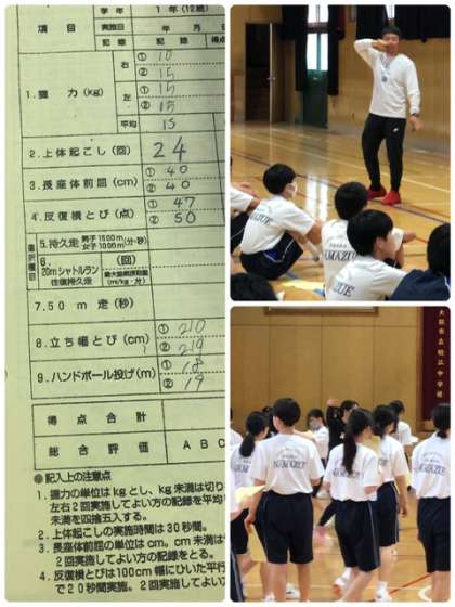 今日の種目は、女子が長座体前屈、男子が反復横とびでした。