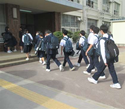 朝の登校風景です。
