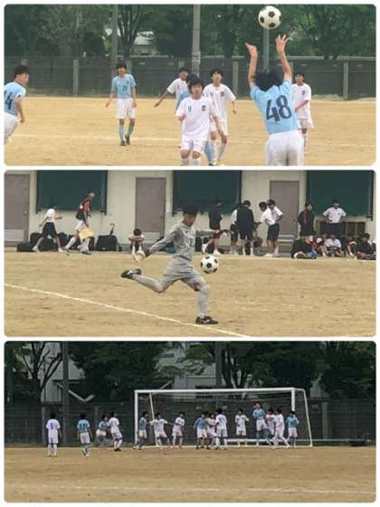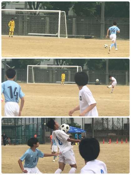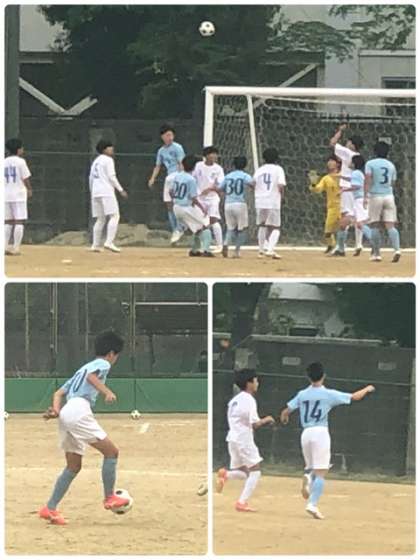 味方47番の選手(水色ユニフォーム)右コーナーキックから10番の選手がピッタリとヘディングであわせ先制ゴール!