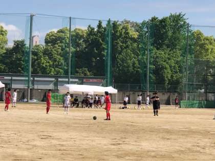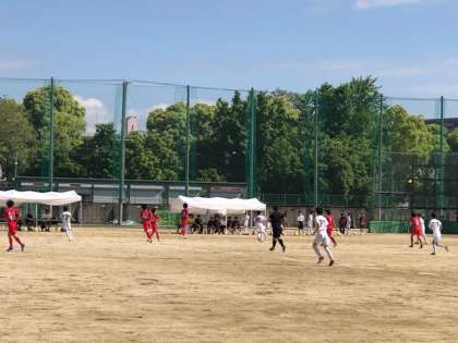 対戦相手は大阪市立下福島中学校(白色ユニフォーム)。