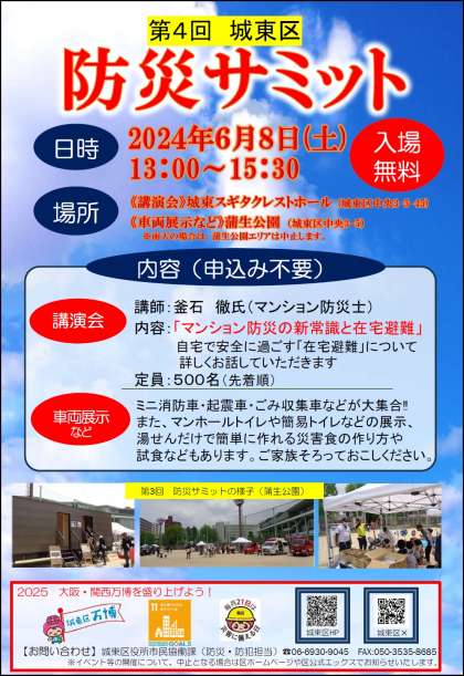 城東区 防災サミットが以下のように開催されます。