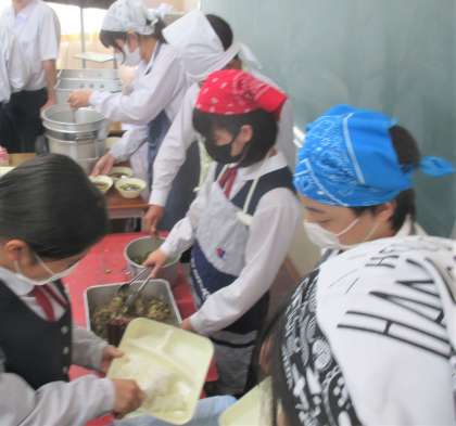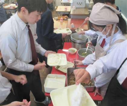 給食の配膳風景です。