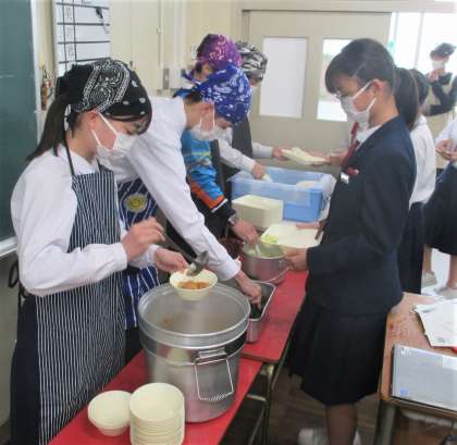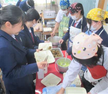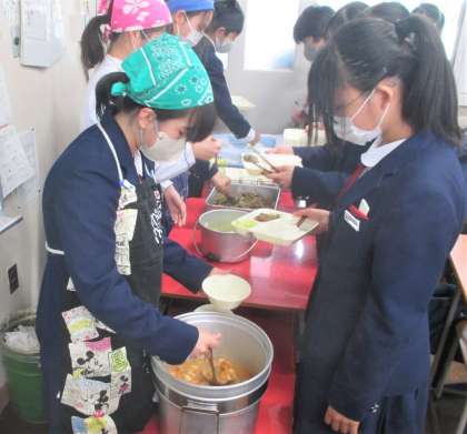 給食の配膳風景です。