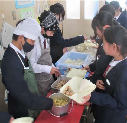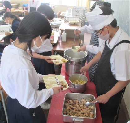給食の配膳風景です。