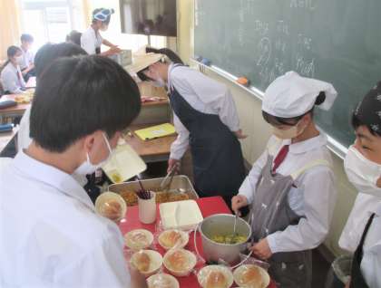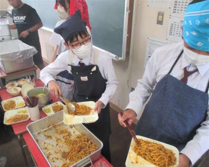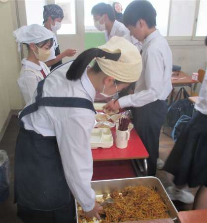 給食の配膳風景です。