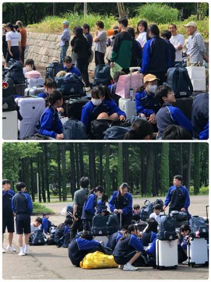 退村式までの待っている間、それぞれ楽しかったことを言い合っています。みんなうれしそうです。