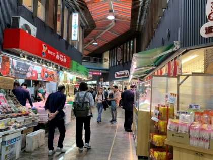 活気のある近江町市場です。お寿司をお昼ご飯に食べた班もありました。