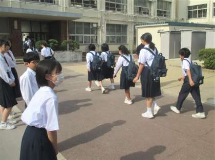 朝の登校風景です。