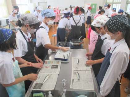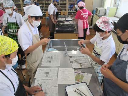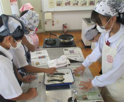 2年生 家庭科 調理実習 いわしの手開き