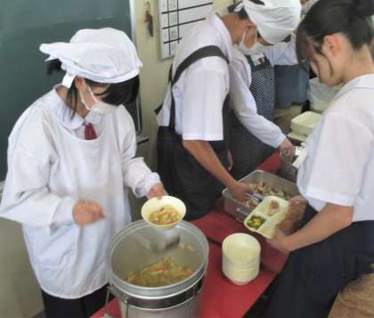 給食の配膳風景です。