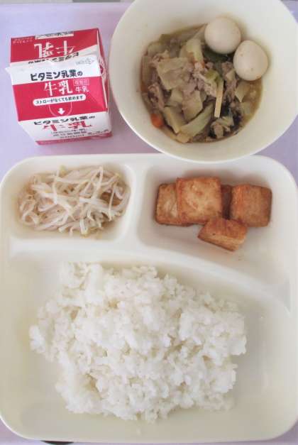ご飯 牛乳 もやしの中華あえ