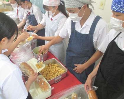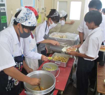 給食の配膳風景です。
