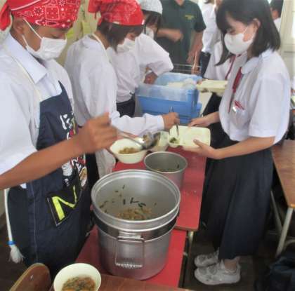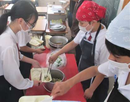給食の配膳風景です。