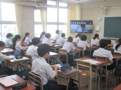 学校長より「1学期の取り組みを振り返って」の講話です。