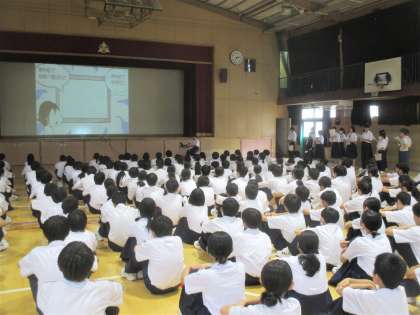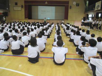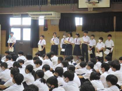 1年生の保健委員が「熱中症について知ろう」を発表しました。