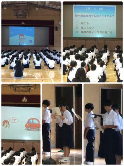 水泳の授業でも(水中でも)汗をかいていて熱中症は起こるそうです。各自、プールサイドに水筒を持っていきましょう。
