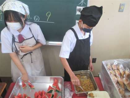 給食の配膳風景です。