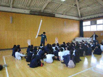 11月24日、11月20日に続いて、小中連携の一環で鯰江小学校6年生の児童(第2班)が来校しました。今日も前回同様、理科の実験で、いろいろな形の『紙ブーメラン』をつくりどこまで飛ぶかの実験をしました。飛べ!飛べ!紙ブーメラン!今日も飛ばして楽しんでいる無邪気な児童の笑顔が印象的でした。