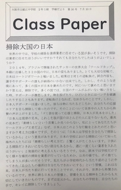 2年1組学級だより『Class Paper』より