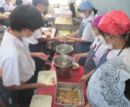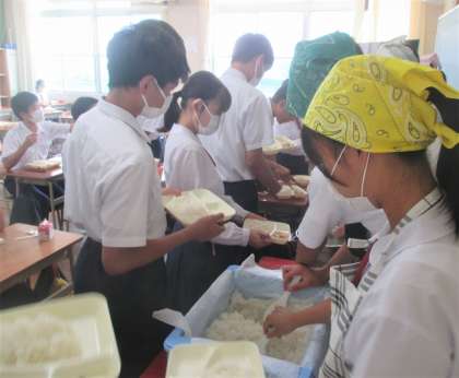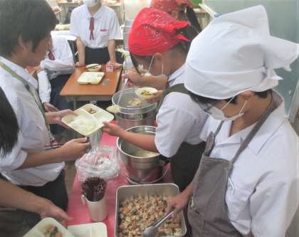 給食の配膳風景です。