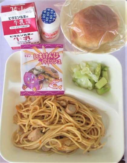 チキントマトスパゲティ いもけんびフィッシュ