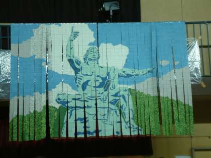 「アナログ壁画」で長崎の平和祈念像が浮かび上がったときは、大きな拍手につつまれました。