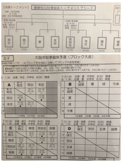 大阪市秋季総体予選(ブロック大会)