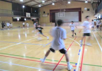 体育館 男子バレーボール部の練習風景です。