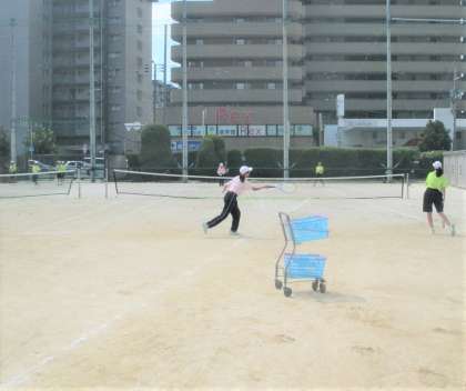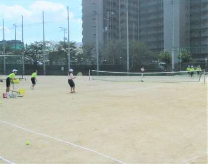 運動場 硬式テニス部の練習風景です。