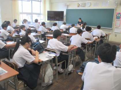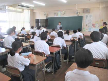 各学級で夏休みを振り返り、新学期にむけての講話です。