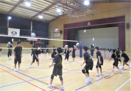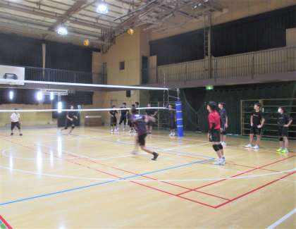体育館 男子バレーボール部の練習風景です。