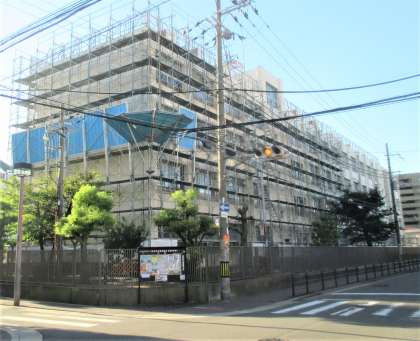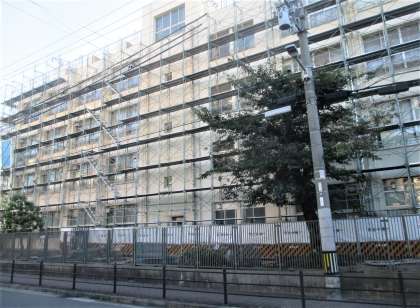 西館 北側と西側に足場が設置されています。