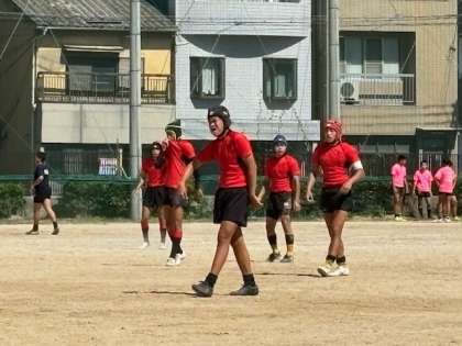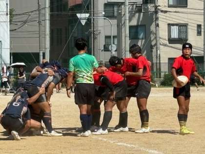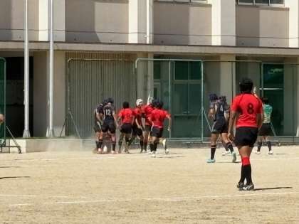 梅垣さんが単独で大きくビッグゲイン、バックスにつなぎ、10番亀田さんがフィニッシュ、トライ。ゴールも決まり、14-0とリードを広げました。