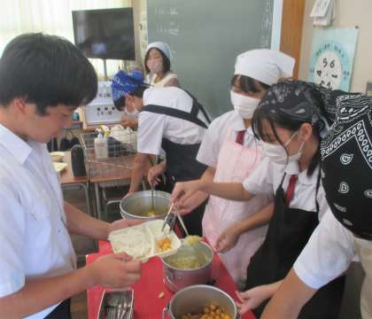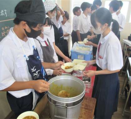 給食の配膳風景です。