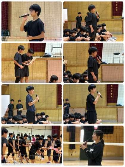 本校体育館にて男子バレーボール部引退式が行われました。