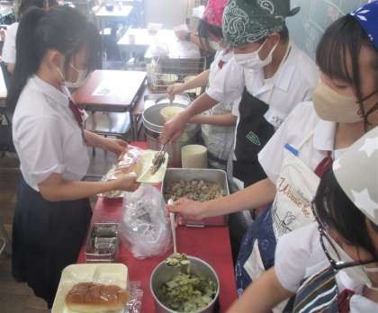 給食の配膳風景です。