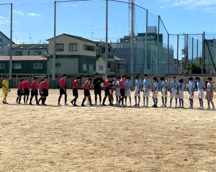 前半早々に相手のオウンゴールで先制しましたが、後半に追いつかれ引き分けで終わりました。今回も課題が多く見つかり実りある試合でした。この試合の経験から学び、さらなる成長の糧にしましょう。