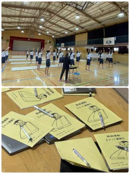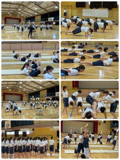 準備運動から授業がスタートしましたが、腕立て伏せ、腹筋、背筋ほか柔軟を含め、けが防止のためのからだの準備もしっかりとできていました。