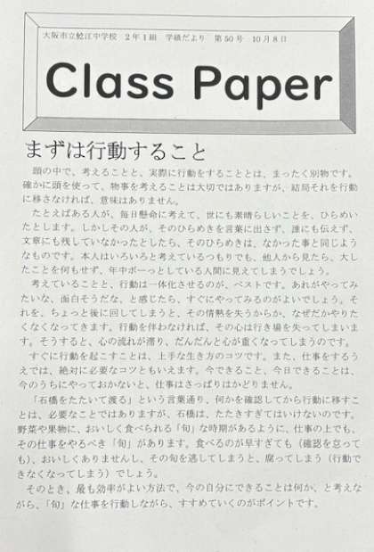 Class Paper(2年1組学級だより 第50号)より一部抜粋