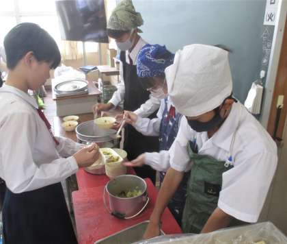 給食の配膳風景です。