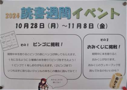 図書室で読書週間のイベントを11月8日(金)まで行います。