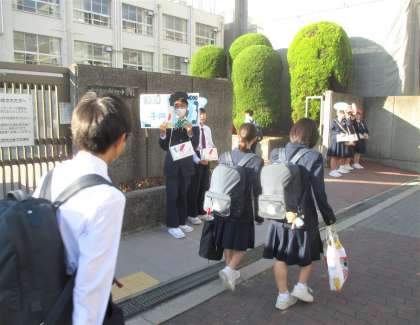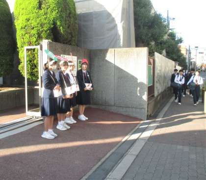 生徒会で赤い羽根共同募金に取り組んでいます。