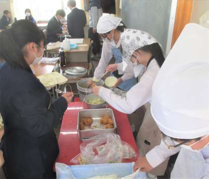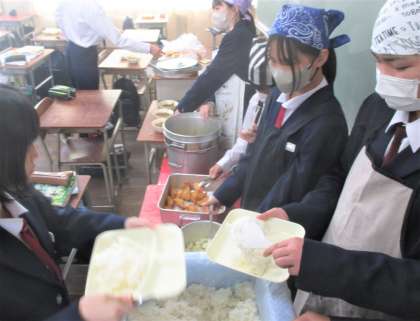 給食の配膳風景です。